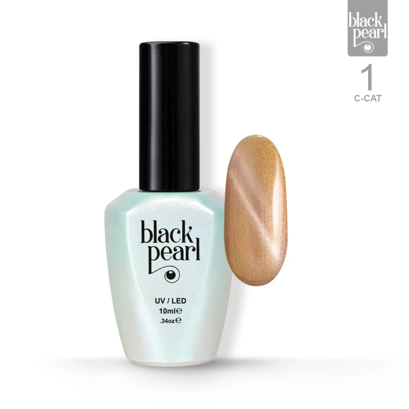 C-Cat 01 to lakier hybrydowy w intensywnym, złotym odcieniu z efektem cat eye, który tworzy charakterystyczną, świetlistą smugę na paznokciu.