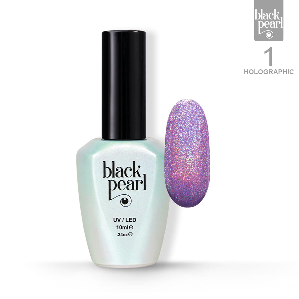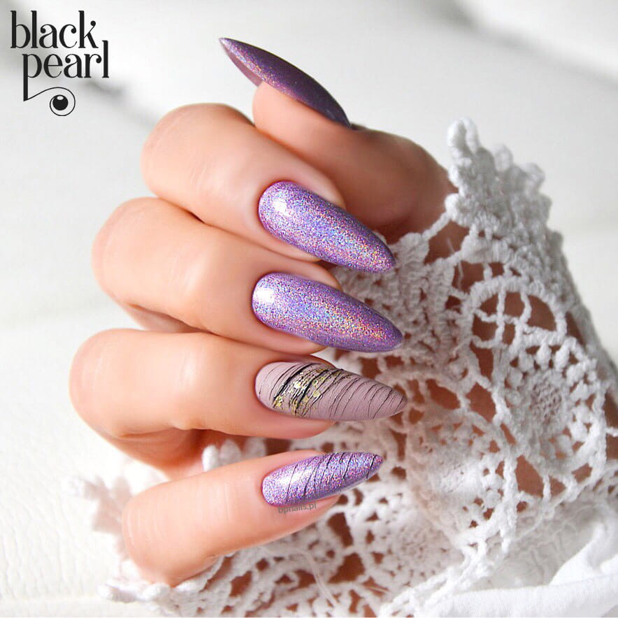 Lakier hybrydowy 01 Holographic to efekt holo w najlepszym wydaniu z wyraźną dozą fioletu.
