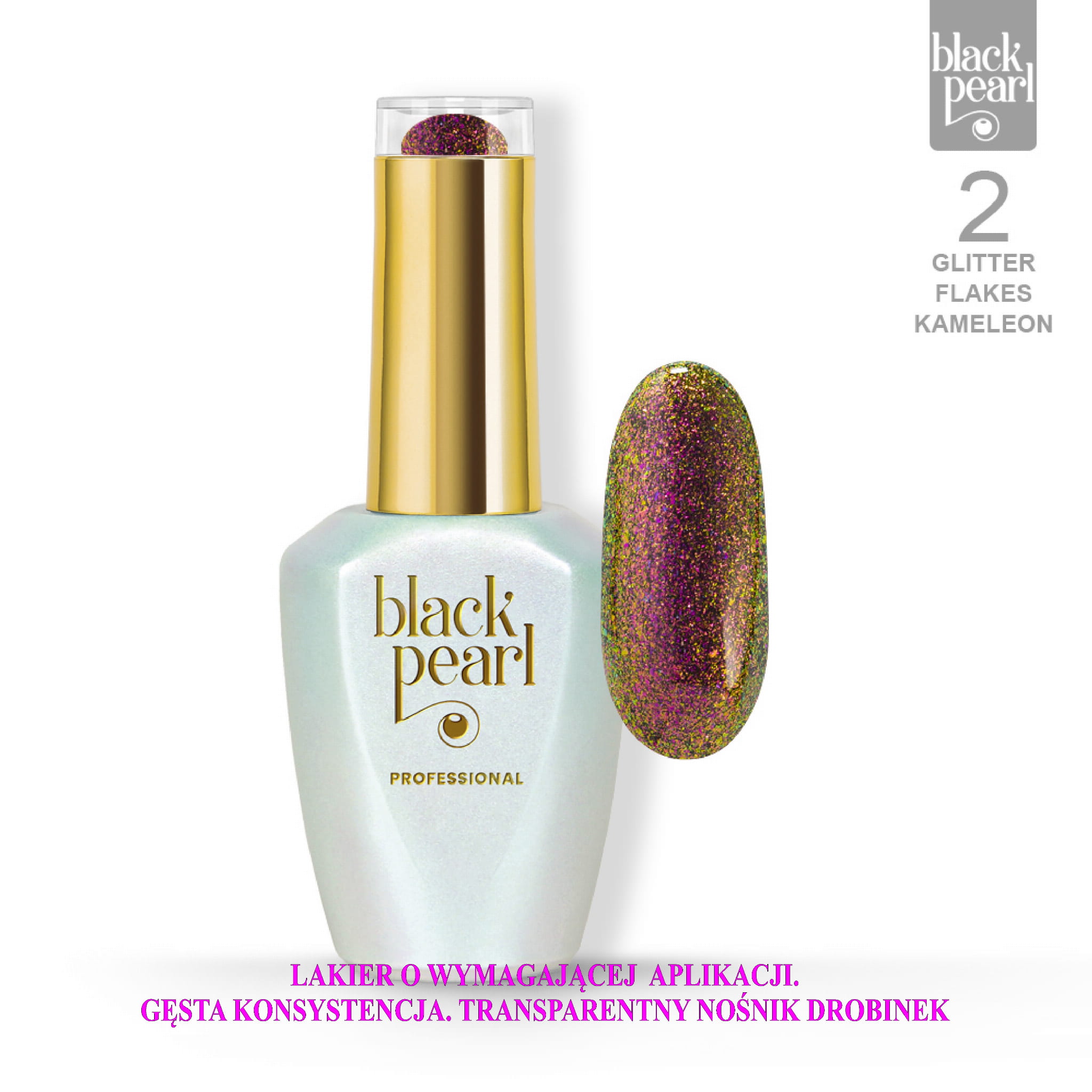 Glitter Flakes Kameleon 2 to wyjątkowy lakier hybrydowy z dużymi, wielowymiarowymi drobinkami, które tworzą spektakularny efekt zmieniającego się koloru.
