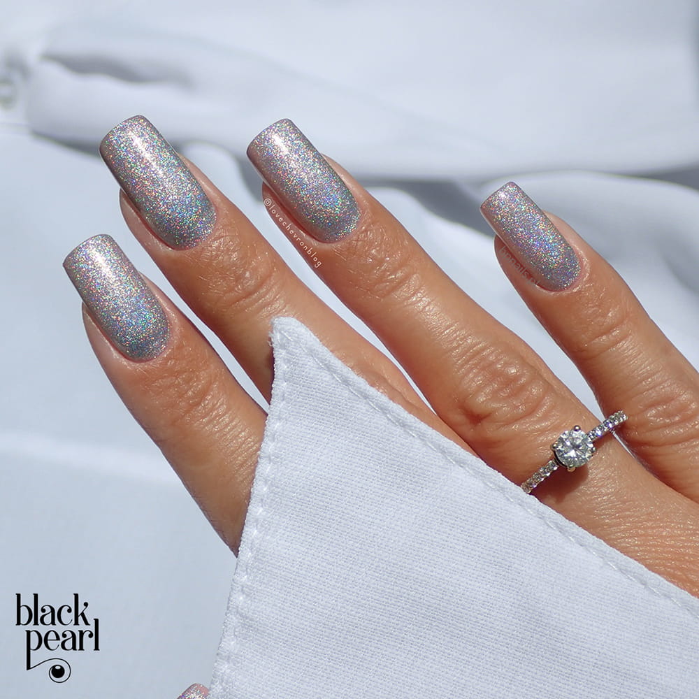 Kolor bazowy w odcieniu srebra został wzbogacony drobinkami holograficznymi, które odbijają światło i tworzą wielowymiarowy połysk charakterystyczny dla kolekcji Holographic.