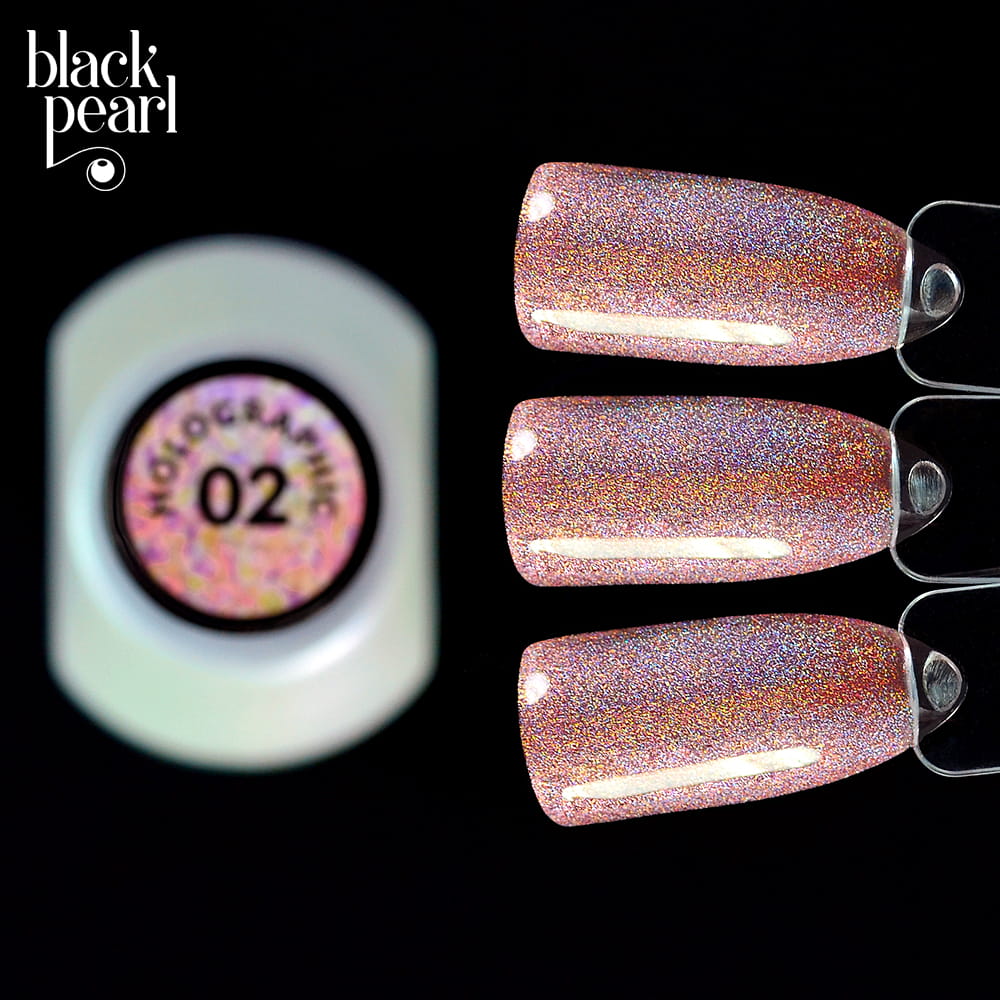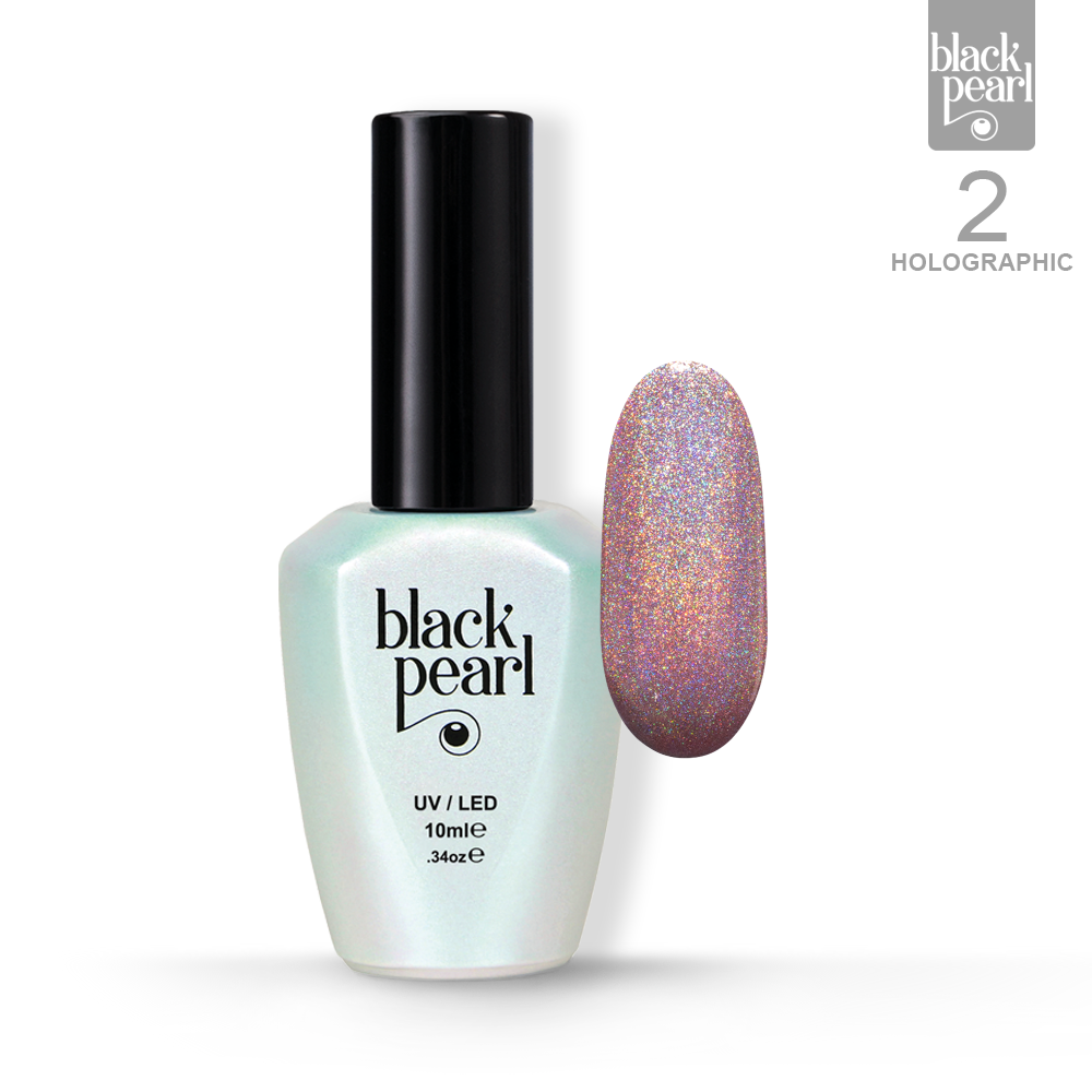 Lakier hybrydowy 02 Holographic to delikatny, szampański odcień, który łączy subtelność koloru z intensywnym efektem holograficznym.