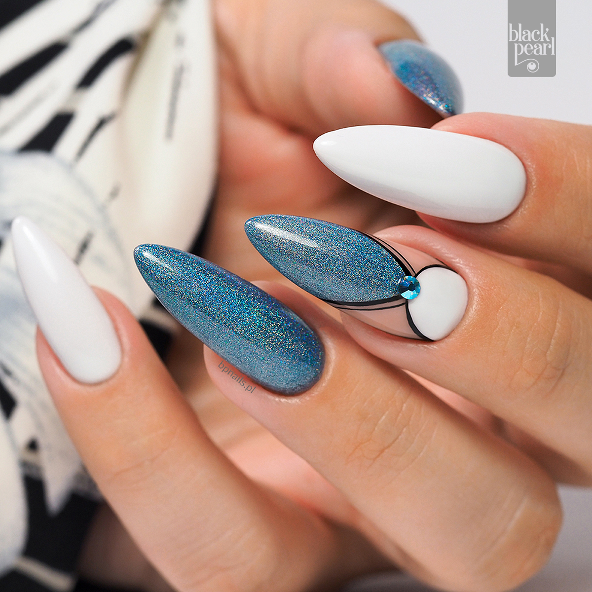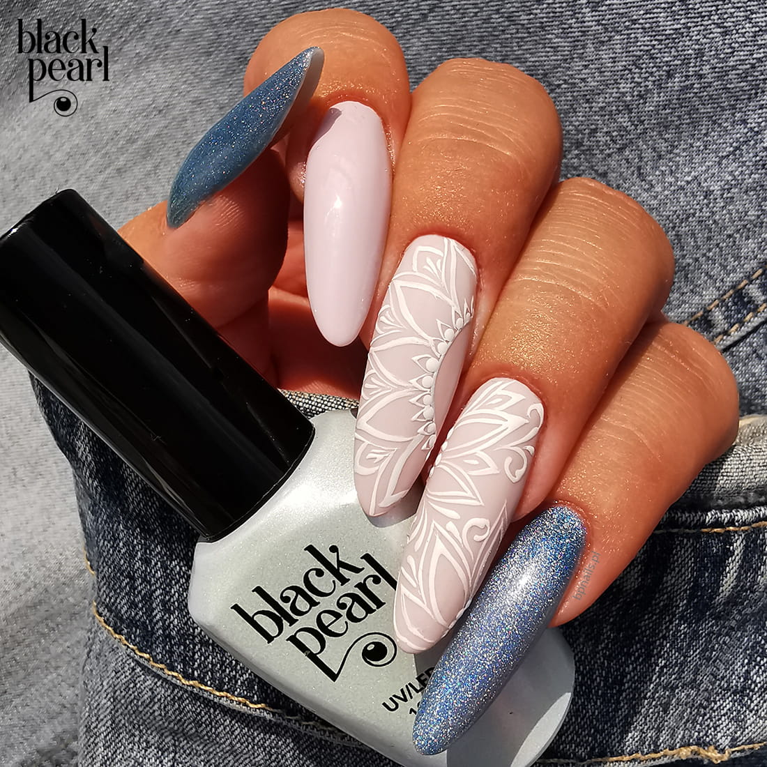 Efekt holograficzny sprawia, że lakier zmienia się w zależności od światła i ruchu, tworząc dynamiczny, przyciągający wzrok manicure.